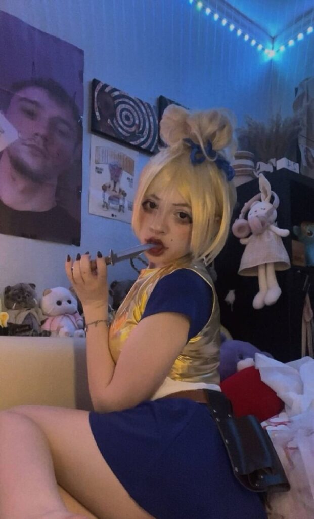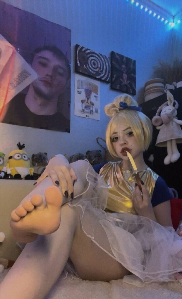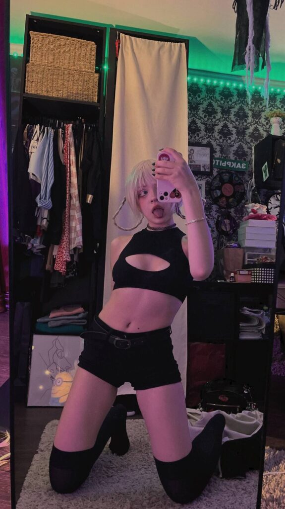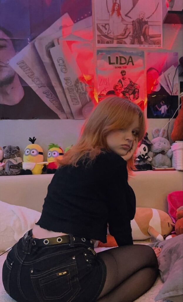 Популярность и контент Взлёт с TikTok-роликов: танцы в корсетах под дарквейв, позы с вызовом, ирония в текстах. Видео набирают миллионы — вирусность от контраста невинности и дерзости. Перешла на Instagram для фото, подчёркивающих формы в тёмных тонах. Влияние: вдохновила тренд «готик-эротики» в русскоязычном сегменте.